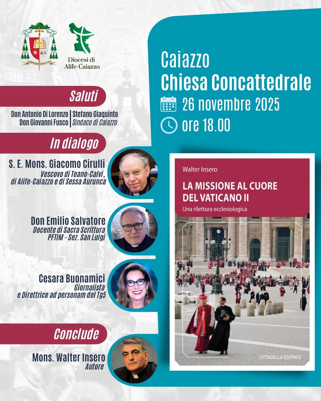 In Primo Piano Comunicato Stampa sui fatti riguardanti l’ex sacerdote Salvatore Zagaria Terza Assemblea sinodale delle Chiese in Italia. Anche le Diocesi guidate dal Vescovo Giacomo Cirulli Nomine del Vescovo tutte le news Servizi Videogallery L’annuncio: Mons. Cirulli vescovo di Alife-Caiazzo tutti i Video Photogallery Pellegrinaggio Giubilare tutte le gallery Il Vescovo Biografia Stemma Agenda Documenti e Nomine Agenda Appuntamenti tutti gli appuntamenti Comunicazione nuove EMAIL DIOCESANE