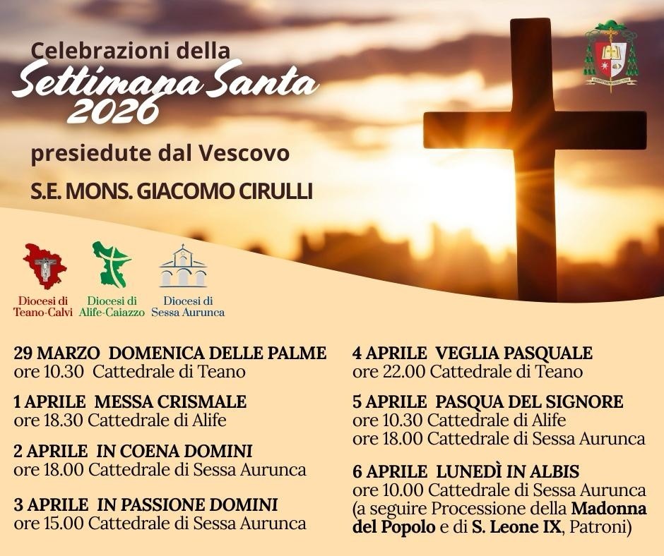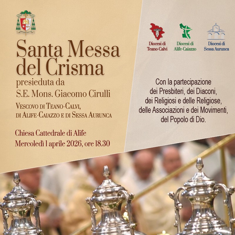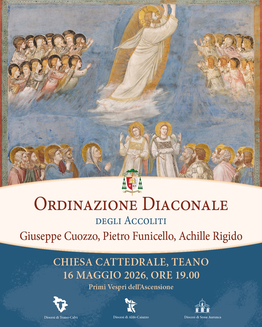 In Primo Piano Riammessi alle celebrazioni dei Sacramenti padrini e madrine Impegni e progetti che restituiscono dignità. Comunicato Stampa sui fatti riguardanti l’ex sacerdote Salvatore Zagaria tutte le news Servizi Videogallery L’annuncio: Mons. Cirulli vescovo di Alife-Caiazzo tutti i Video Photogallery Pellegrinaggio Giubilare tutte le gallery Il Vescovo Biografia Stemma Agenda Documenti e Nomine Agenda Appuntamenti tutti gli appuntamenti Comunicazione nuove EMAIL DIOCESANE