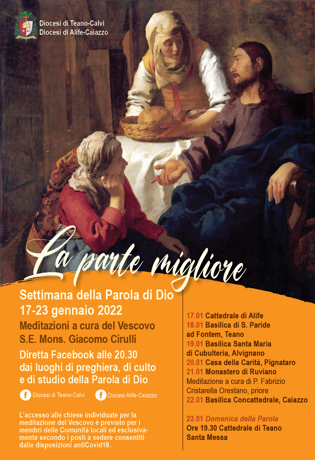 In preparazione alla Domenica della Parola fissata da Papa Francesco per domenica 23 gennaio 2022, le Diocesi di Teano-Calvi e di Alife-Caiazzo, vivranno la Settimana della Parola con le meditazioni al Vangelo di Luca a cura del nostro Vescovo Mons. Giacomo Cirulli.